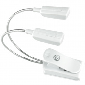 LED lampička na notový stojan, 4 LED diody, 2x husí krk, klip pro uchycení na notový stojan, napájení 3x AAA, barva bílá