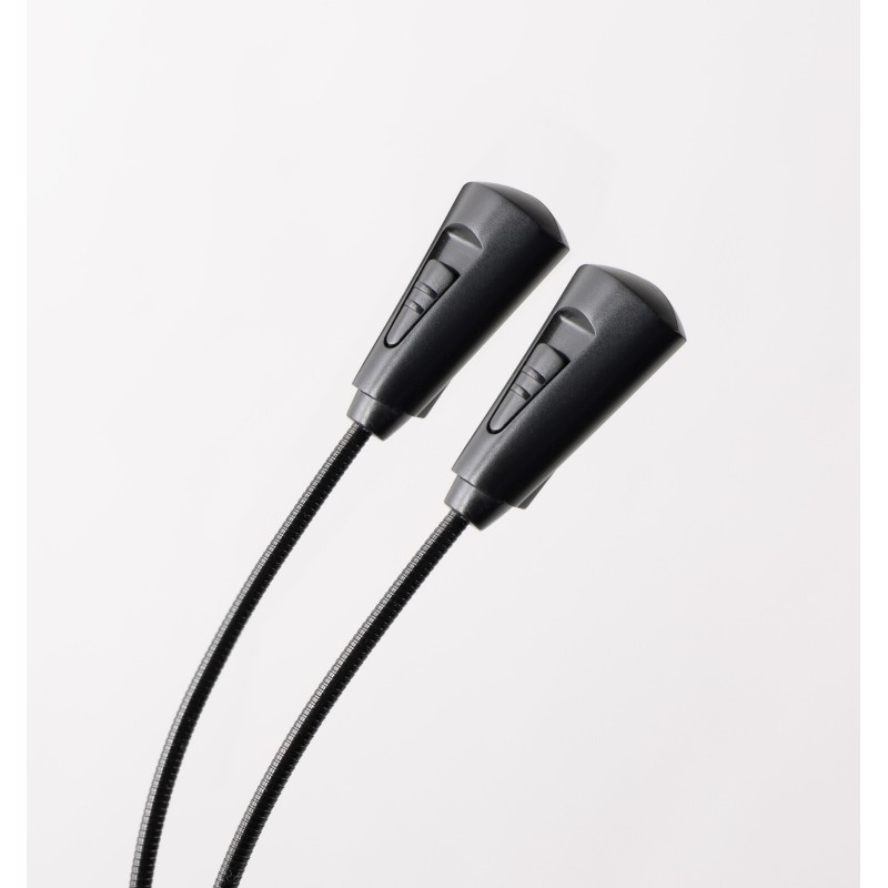 Všestranná LED lampička s dobíjecí baterií se dvěma oddělenými husími krky pro připevnění k notovému pultu. Na každém husím krku jsou dvě LED diody s dlouhou životností až 100 000 hodin. Upevnění na notový pult či stolní desku díky praktickému klipu (tloušťka až 25 mm). Lampičku lze složit. Li-Ion baterie s 3,7 V/1000 mAh se plně nabje za 160 minut a produkuje přímé jasné světlo po dobu asi 14 hodin. Součástí dodávky je USB nabíjecí kabel. Lze využit také jako stolní lampičku. Vyrábí se v černé barvě.Cena a dostupnost