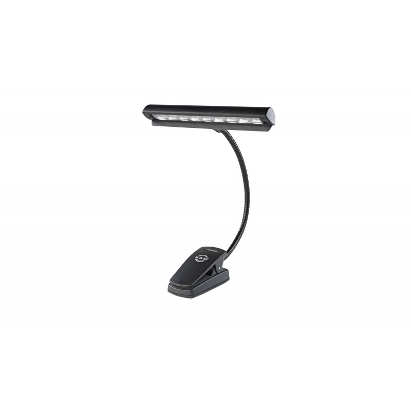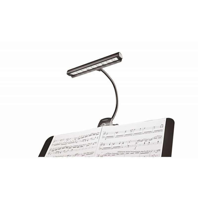 Profesionální lampička na husím krku pro notový stojan s bateriemi a napájecím zdrojem »Orchestra Light Eos«. Devět extra světlých a energeticky úsporných LED diod zajišťuje konzistentní a živé osvětlení. Flexibilní husí krk je plně nastavitelný. Světlo má spínač se dvěma úrovněmi jasu. Bezpečné uchycení pomocí silného klipu. Součástí balení jsou 3 ks AA 1.5V baterií, napájecí zdroj s 3 m kabelem a transportní obal.Cena a dostupnost