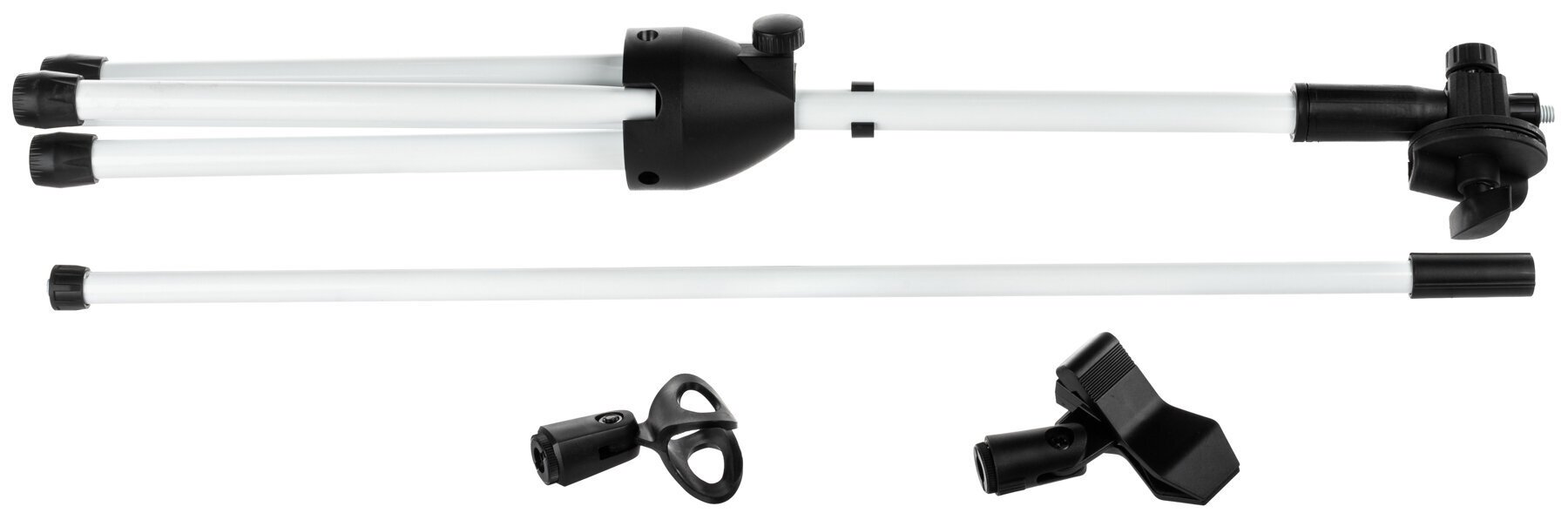 Stojan je vybaven dvěma držáky na mikrofon, což nabízí výjimečnou flexibilitu pro různé nahrávací nebo pódiové konfigurace. Jeden držák je umístěn přímo na stojanu a poskytuje stabilní a pevnou polohu pro mikrofon. Druhý držák je umístěn na nastavitelném rameni, které lze prodloužit až na 80 cm, což umožňuje přesné nastavení polohy mikrofonu. Tento dvojitý design je ideální pro hudebníky, podcastery nebo kohokoli, kdo potřebuje spravovat dva mikrofony současně nebo nastavit jeden pro specifické nahrávací úhly.