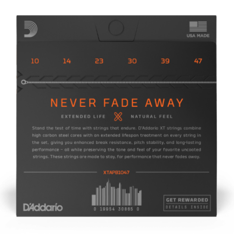 Struny D'Addario XT vydrží až čtyřikrát déle než tradiční neošetřené struny, aniž byste museli obětovat kvalitu zvuku nebo pocit ze hry.Zároveň poskytují vyšší odolnost proti praskání a lepší stabilitu ladění. Díky šestihrannému ocelovému jádru s vysokým podílem uhlíku a vinutí z fosforbronzu nabízí vřelý a mohutný zvuk s vyváženým podílem všech frekvencí, dlouhým sustainem a skvělou dynamikou.